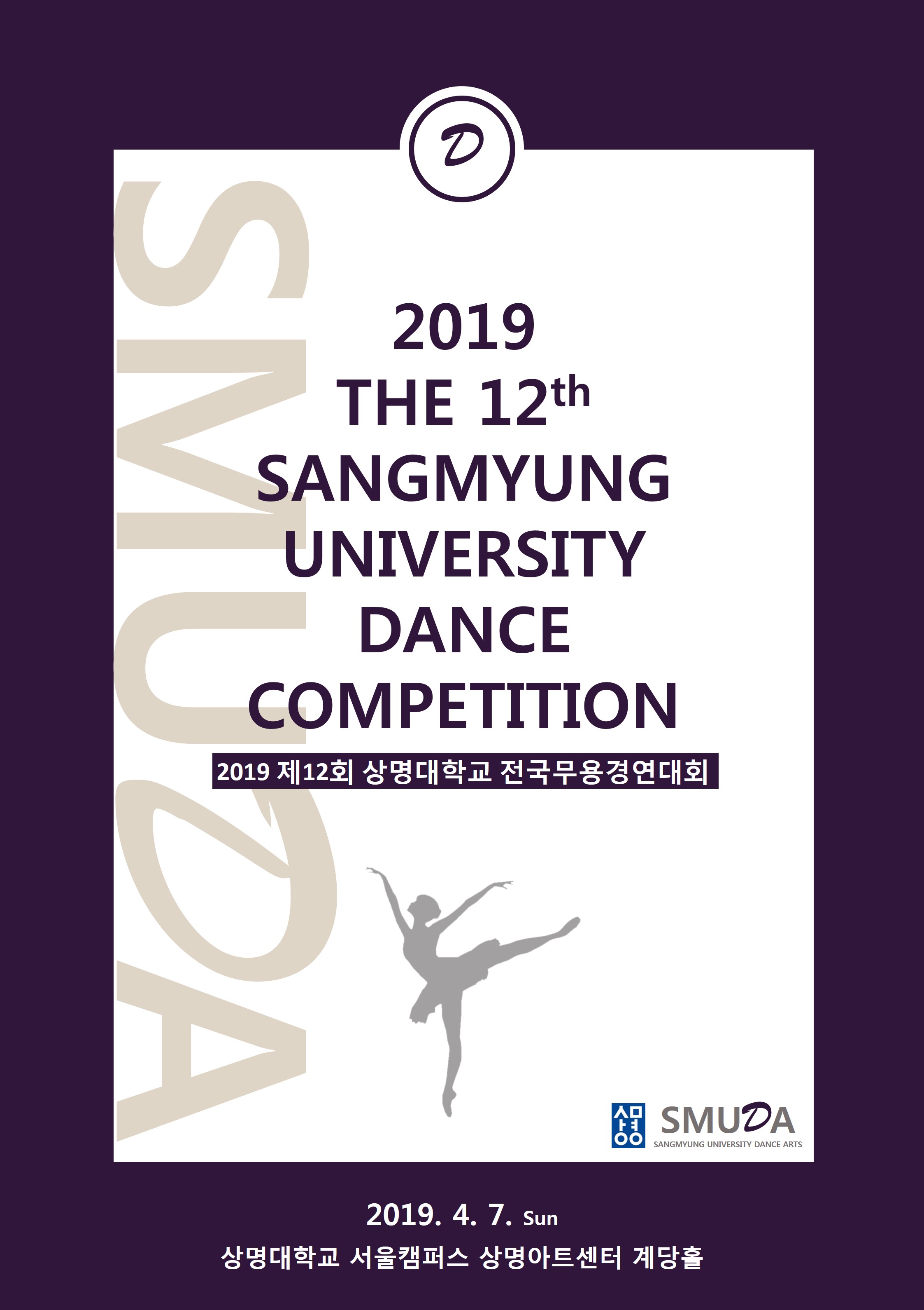 - [콩쿠르] 2019 제12회 상명대학교 전국무용경연대회 부문별 경연순서 공지